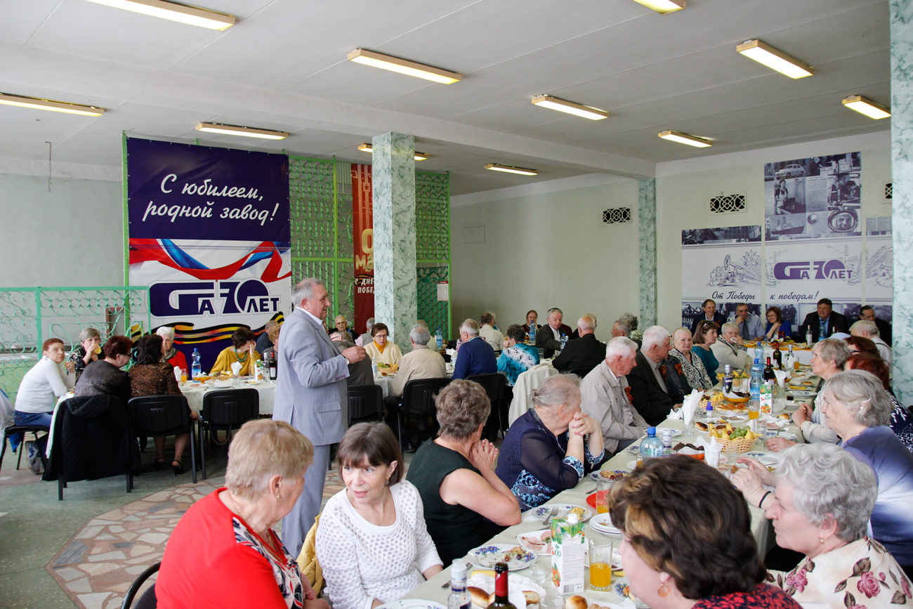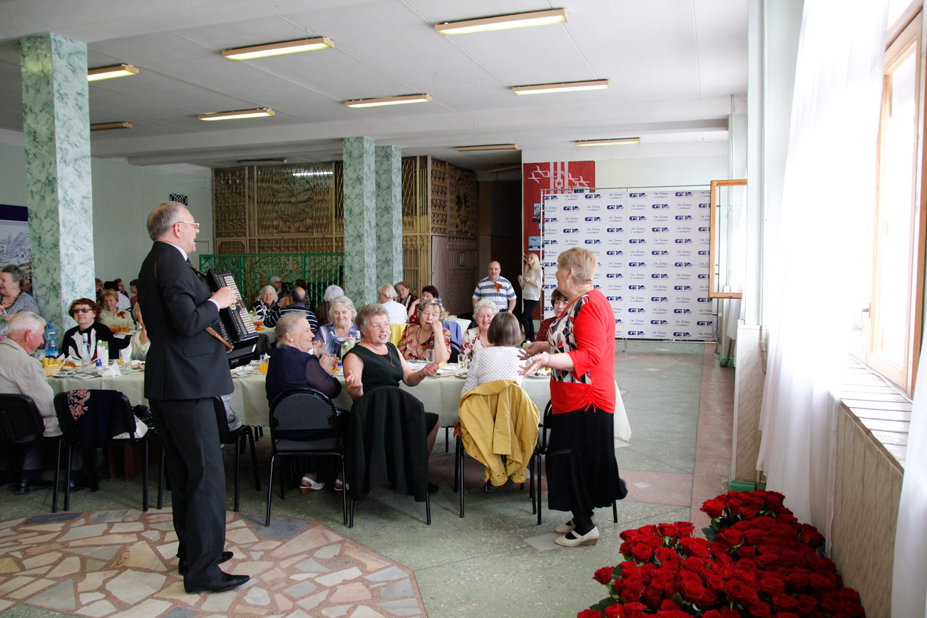 Обед прошел в праздничной, теплой и семейной атмосфере. Участники мероприятия поздравляли друг друга, делились интересными историями из жизни, обсуждали экскурсию по заводу, благодарили руководство и организаторов за теплый прием. Традиционно на праздничный обед был приглашен баянист, который своими игрой и песнями поднимал настроение ветеранам, они вместе исполняли песни фронтовых лет, танцевали и вспоминали молодые годы.