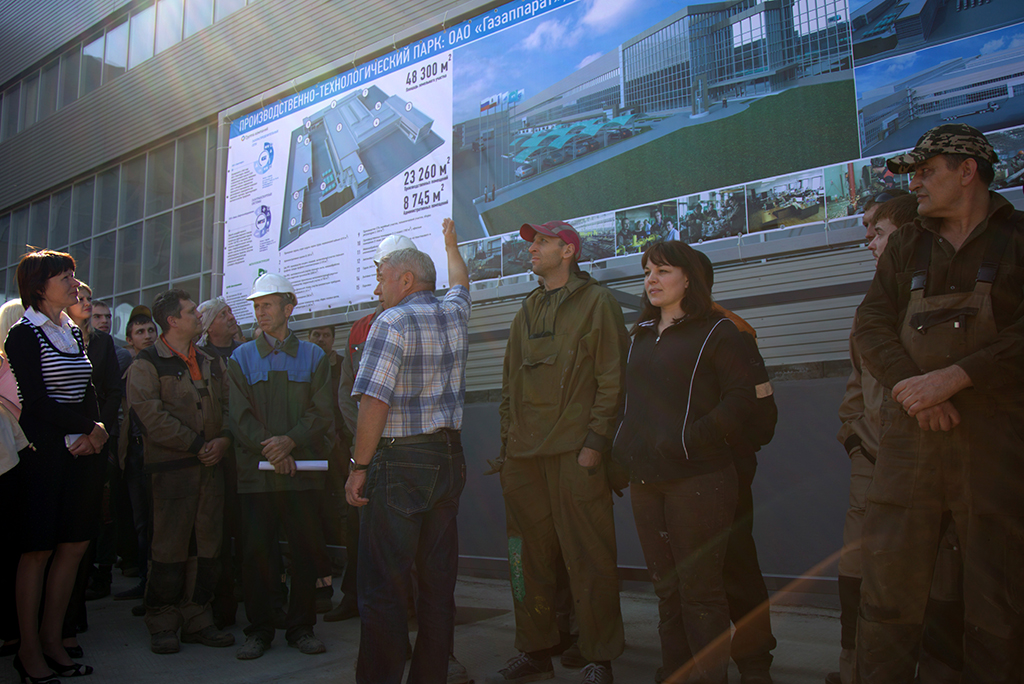 В первый день празднования юбилея для ветеранов труда завода «Газаппарат» была проведена экскурсионная программа по территории производственной площадки. На экскурсии побывали более 80 ветеранов предприятия.